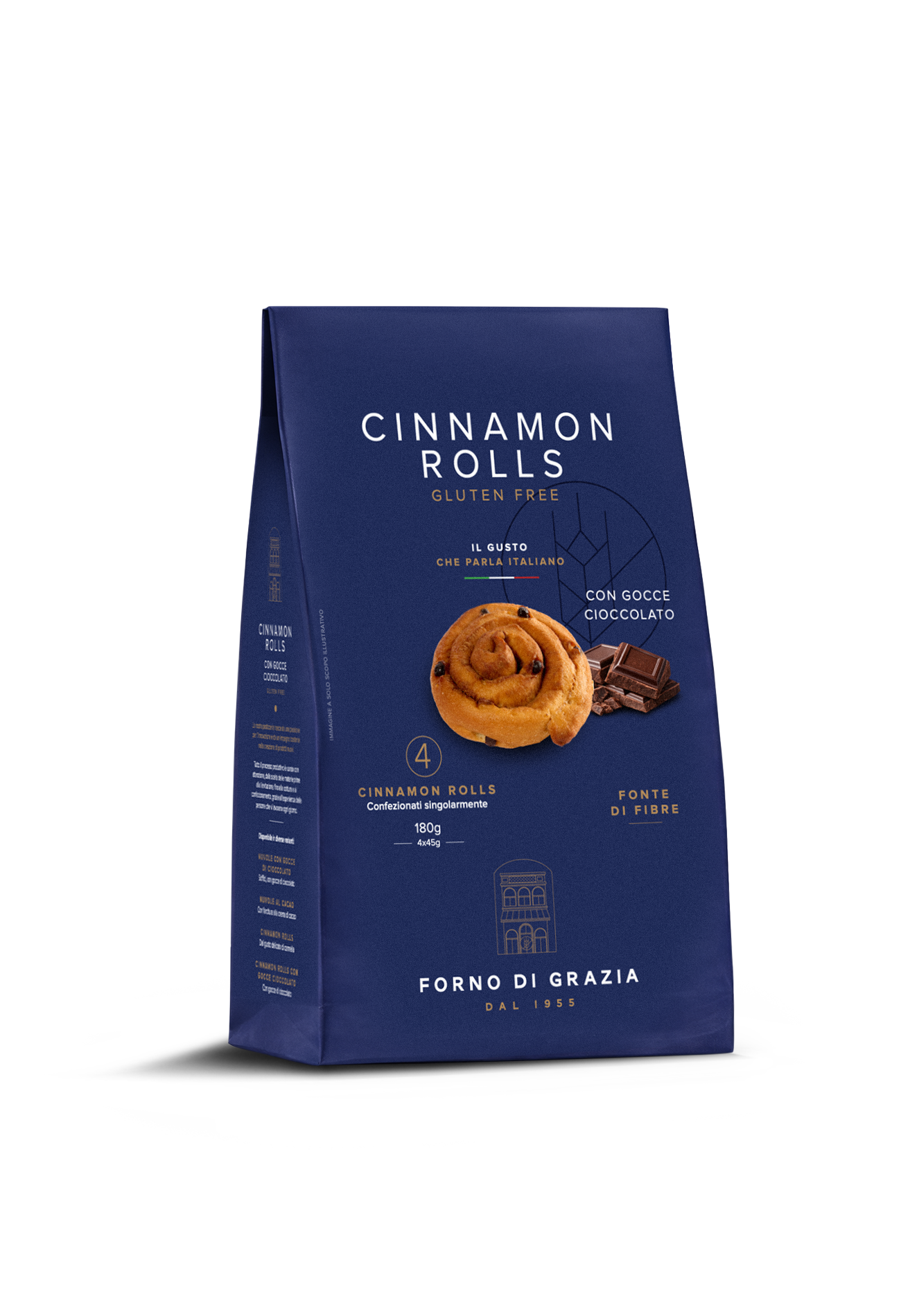 acqua, amido di riso, gocce di cioccolato 8%:(zucchero, pasta di cacao, burro di cacao, emulsionante lecitina di SOIA),olio di semi di girasole alto oleico, zucchero, lievito di birra, addensanti: guar-idrossipropilmetilcellulosa, destrosio, pasta acida di riso essiccata, emulsionanti: mono e digliceridi degli acidi grassi, fibra di psyllium, LATTE scremato delattosato*, farina di riso integrale, farina di riso, sale, gomma di xantano, fibre vegetali (pisello, patata, psyllium, bambù, semi di lino), alcool, cannella in polvere 0,3%, aroma, conservante: potassio sorbato. *Il prodotto contiene glucosio e galattosio in conseguenza della scissione del lattosio. Contenuto di lattosio nel prodotto finito < 0,01 g/100 g.