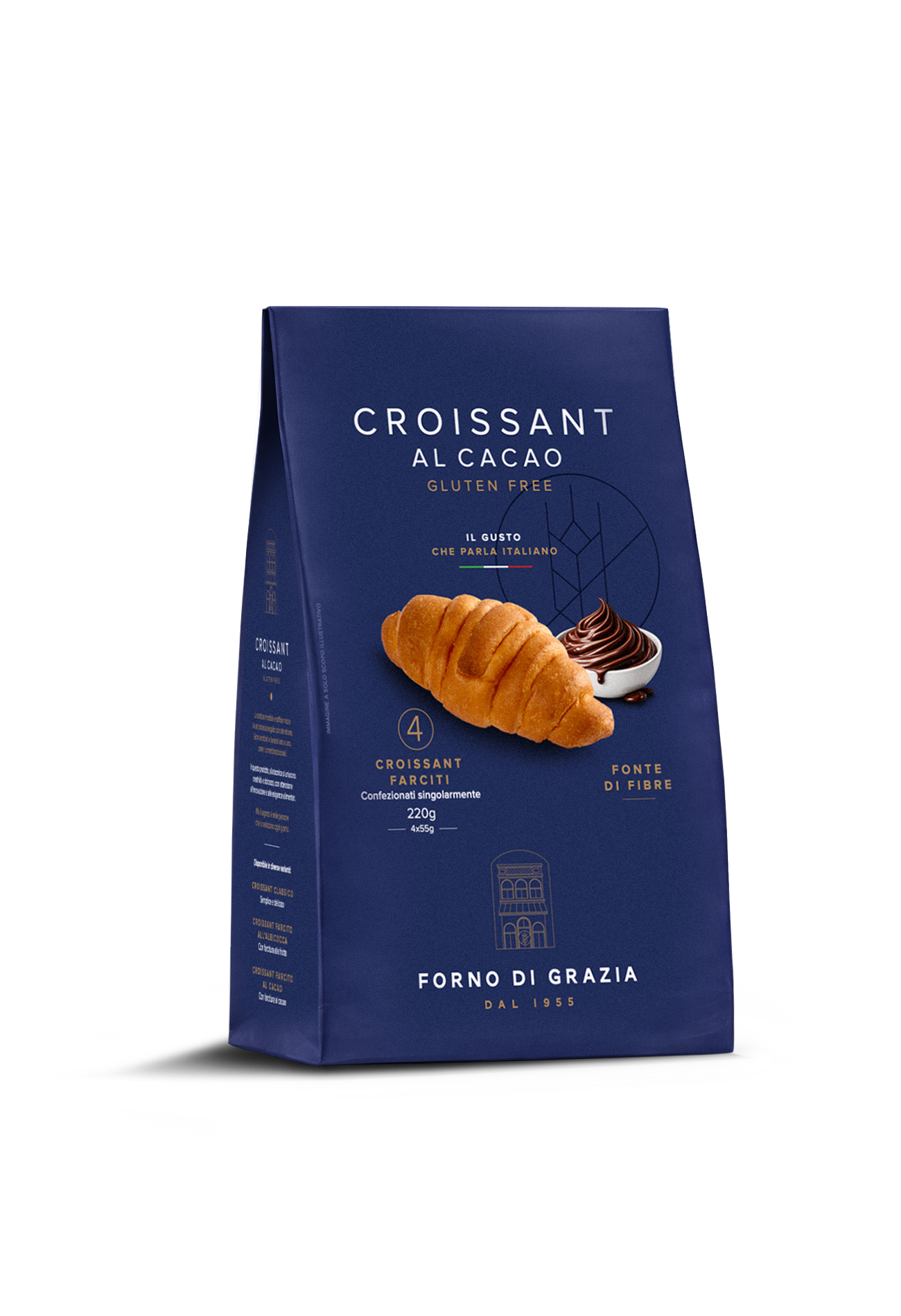 La struttura morbida e soffice nasce da un processo seguito con attenzione. Sono arrotolati e lavorati uno a uno, come i cornetti tradizionali. In questo prodotto, alla tecnica si uniscono creatività e dolcezza, con attenzione all’innovazione e alle esigenze alimentari.